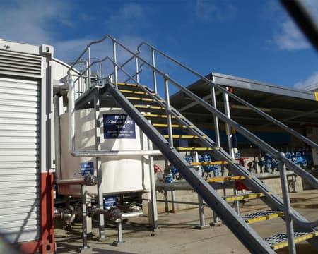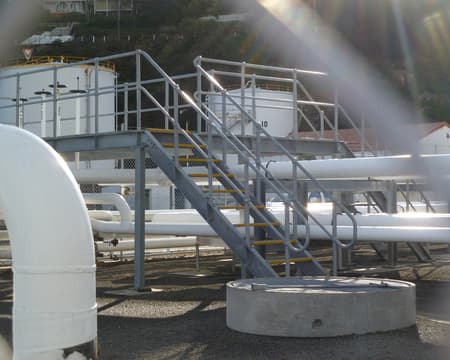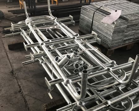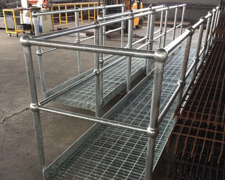 Where edge protection, guard/hand railing is required, Steel Grating Ltd's ball stanchions system combines quality engineering and economics to provide our clients with an efficient solution to any project. We offer our clients stanchion posts, closure and rail bends and kick plates for simple and easy onsite installation. We are also able to offer complete fabricated hand/guardrail panels to suit your requirements.
