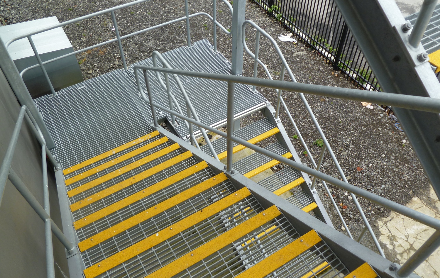 High visibility yellow abrasive nosings or checker plate nosings can be fitted