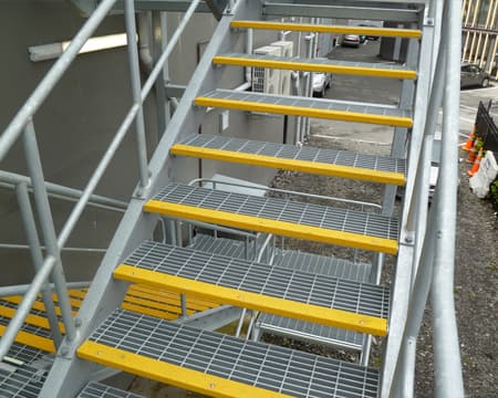 Robust stair treads in steel, FRP or aluminium supplied NZ wide from Steel Grating Ltd in Christchurch